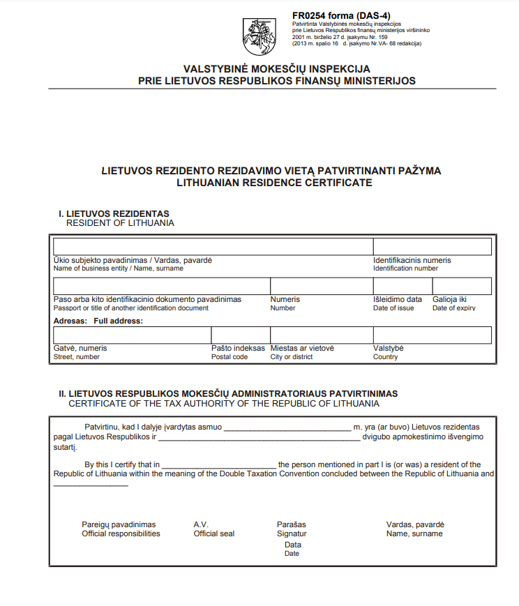 Tłumaczenie przysięgłe certyfikatu rezydencji podatkowej z Litwy na język polski