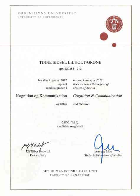 Dyplom ukończenia studiów z Danii bywa wymagany przy sprawach urzędowych, edukacyjnych, pracowniczych, rejestracyjnych albo rodzinnych. Dyplom ukończenia studiów wydaje uczelnia lub inna uprawniona instytucja edukacyjna. Tłumaczenie takiego dokumentu jest często potrzebne przy rekrutacji do szkoły lub uczelni, nostryfikacji, pracy albo potwierdzaniu wykształcenia.