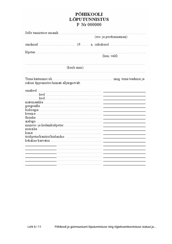 Świadectwo ukończenia szkoły z Estonii bywa wymagany przy sprawach urzędowych, edukacyjnych, pracowniczych, rejestracyjnych albo rodzinnych. Świadectwo ukończenia szkoły wydaje szkoła lub inna uprawniona placówka edukacyjna. Tłumaczenie takiego dokumentu jest często potrzebne przy rekrutacji do szkoły lub uczelni, nostryfikacji, pracy albo potwierdzaniu wykształcenia.