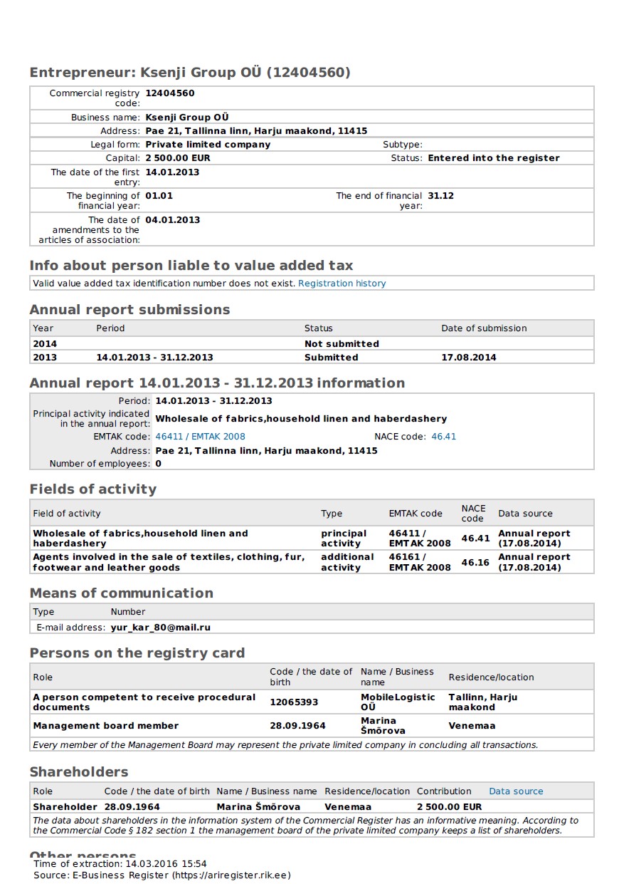 Tłumaczenie przysięgłe wyciągu z KRS z Estonii na język polski