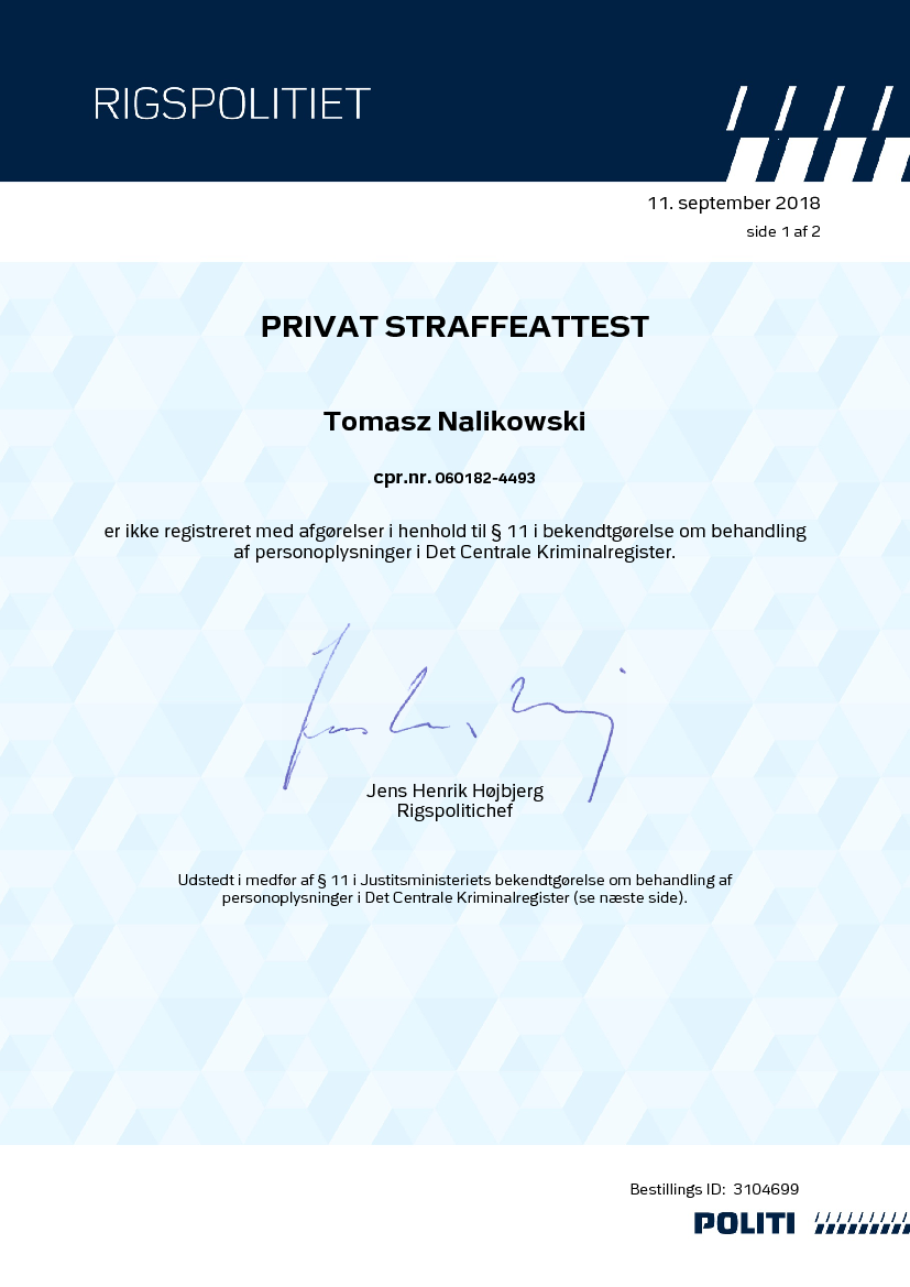 Tłumaczenie przysięgłe zaświadczenia o niekaralności z Danii na język polski – online